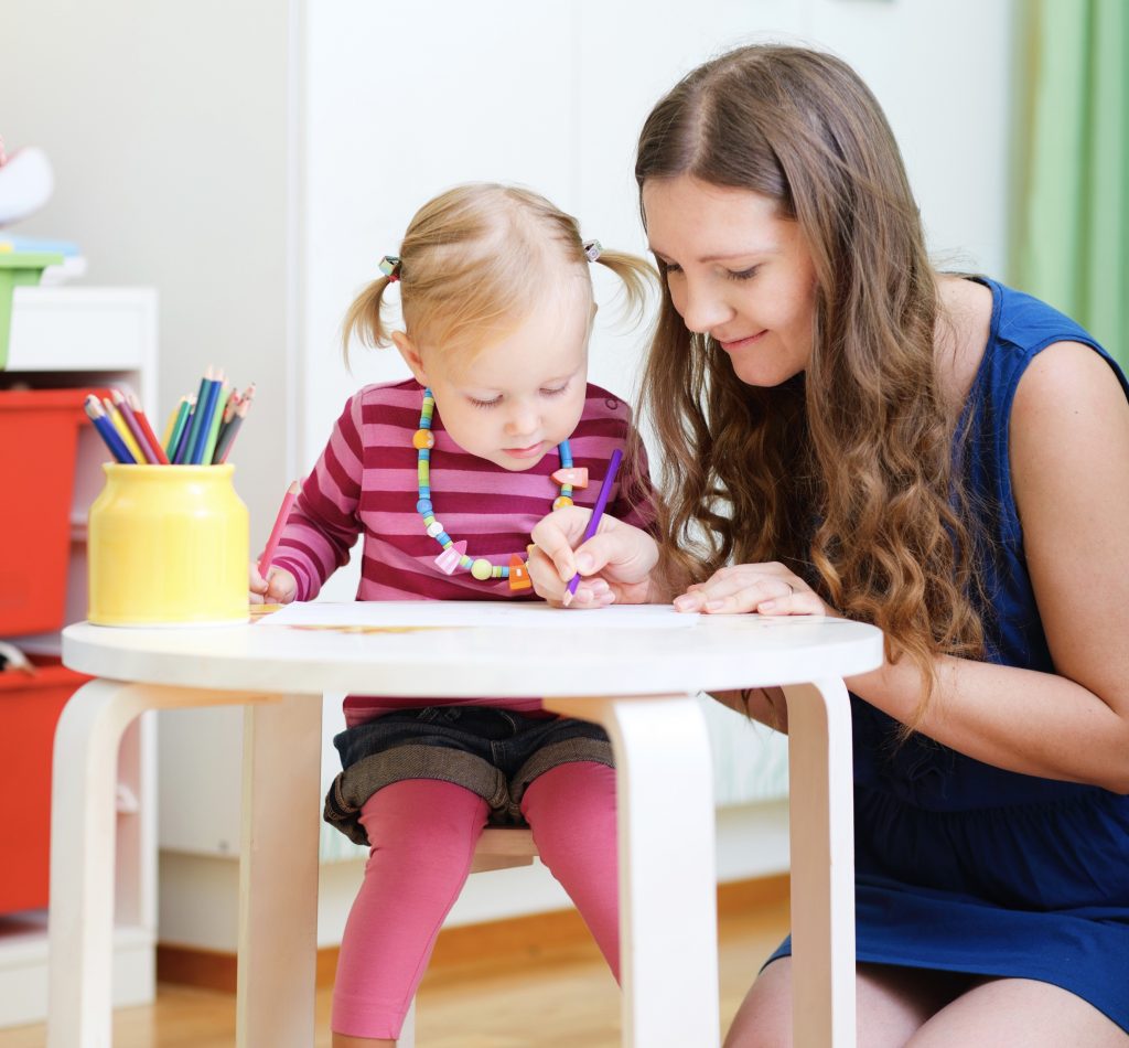 Image précédente Image suivante Mother and daughter drawing together Vertical photo of mother and daughter drawing together